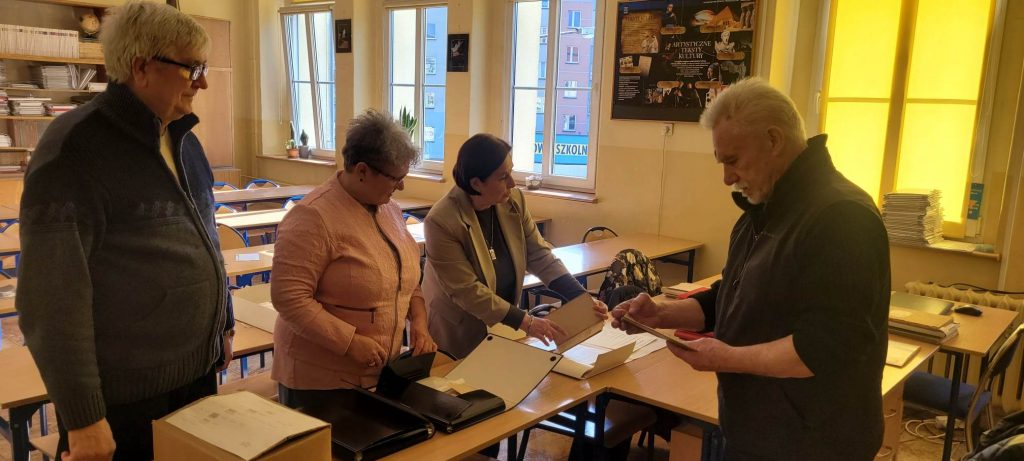 W dzisiejszym, jakże wzruszającym spotkaniu uczestniczyła Pan Maria Idzik, która od wielu lat opiekuje się archiwum po Państwu Tyrankiewczach oraz dr Edmund Maliński, historyk, autor monografii poświęconej Małżeństwu Tyrankiewiczów. Przeglądając pozostawione materiały, oglądając zdjęcia, rozmawiając o historii rodziny – mieliśmy wszyscy poczucie wagi i roli pamięci. Nasi Goście byli pod ogromnym wrażeniem tego, w jaki sposób Helena i Wincenty Tyrankiewiczowie są obecni w życiu naszej szkoły i miasta, jak kultywowana jest pamięć o ich zasługach, także w postaci nazwy ulicy czy funkcjonującego od końca lat 60. XX wieku – Stypendium.