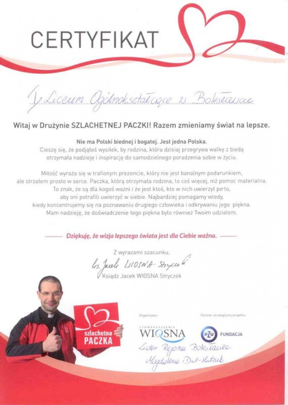 Dziękujemy Wszystkim, którzy pomogli nam tę „Szlachetną Paczkę” przygotować.
