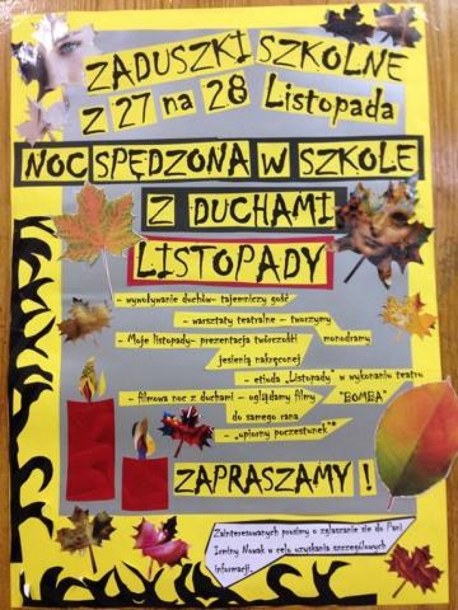 Pod koniec listopada mieliśmy niezwykłą okazję do tego, by podzielić się talentem, zmierzyć z wyobraźnią, poszukać inspiracji w świecie „poza granicami”, spędzić czas w przyjacielskim gronie… i poznać nocną stronę szkoły – a to wszystko za sprawą zorganizowanych przez szkolny Teatr Bomba i Panią Irminę Nowak – „Listopadów”.