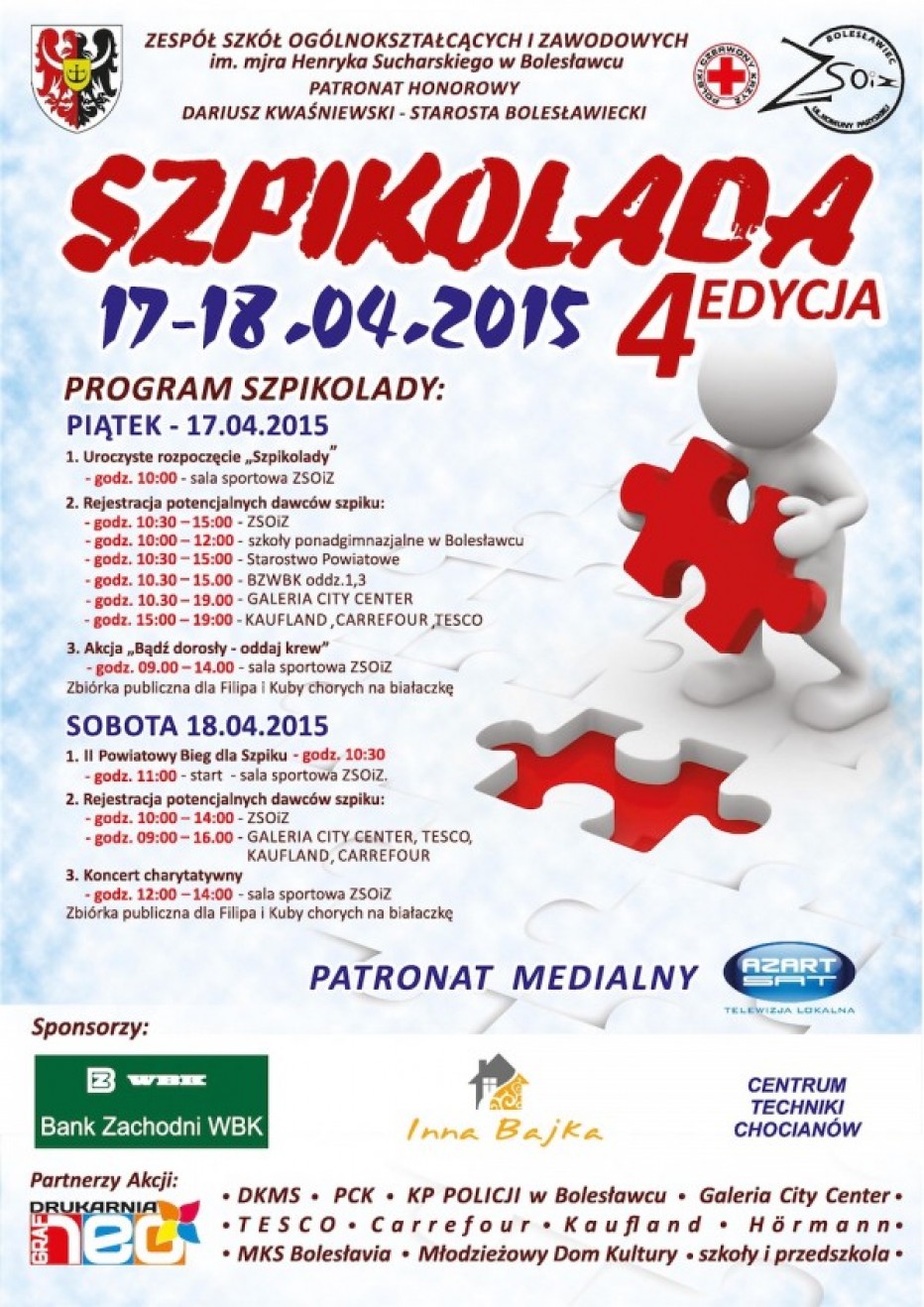 W tegorocznej „Szpikoladzie” zaplanowano wiele działań. Zapoznajcie się ze szczegółami na plakacie i zachęćcie innych do udziału w tej cennej inicjatywie.