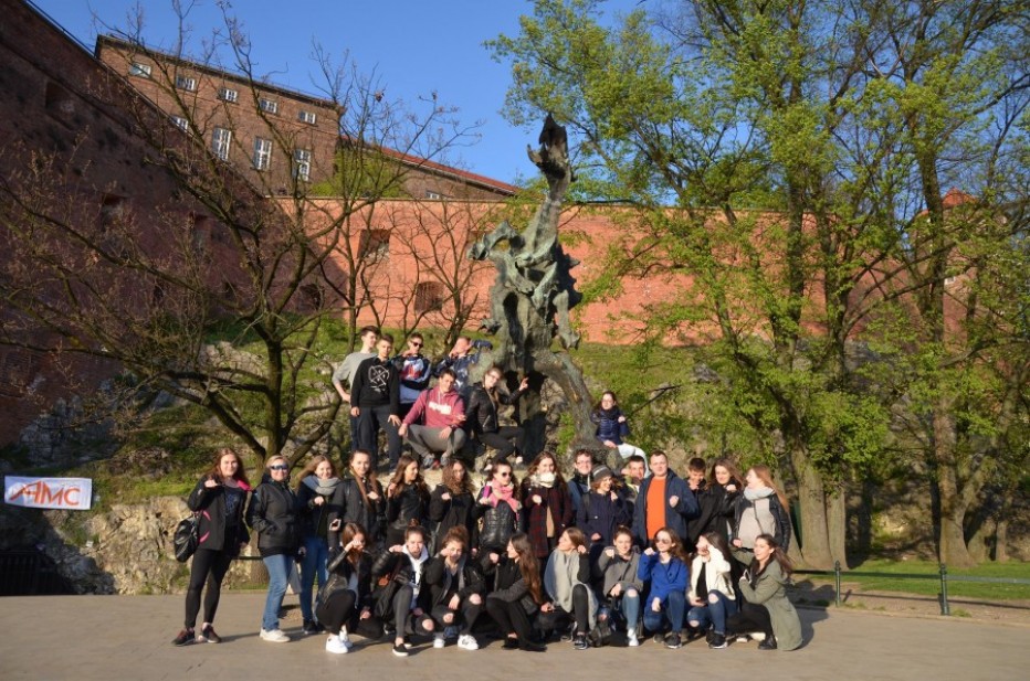 Po sześciogodzinnej podróży, wyruszyliśmy na spacer Traktatem Królewskim. Zatrzymaliśmy się obok pomnika Grunwaldzkiego, przeszliśmy obok Barbakanu, mijając bramę Floriańską. Weszliśmy do jednego z najbardziej popularnych zabytków Krakowa- do kościoła Mariackiego, podziwiając ołtarz Wita Stwosza. Następne dwie godziny spędziliśmy oglądając inne obiekty umiejscowione w Rynku. W kolejnych dniach przewodnicy pokazywali nam Wawel, katedrę oraz dzwon Zygmunta, z którego podziwialiśmy Kraków z lotu ptaka. Legenda głosi, że każdy, kto dotknie dzwonu, spełni wszystkie swoje marzenia- zatem każdy z nas chciał z tego skorzystać! W ostatnim dniu odwiedziliśmy Muzeum Uniwersytetu Jagiellońskiego, a w drodze powrotnej oglądaliśmy Maczugę Herkulesa w Ojcowskim Parku Narodowym.