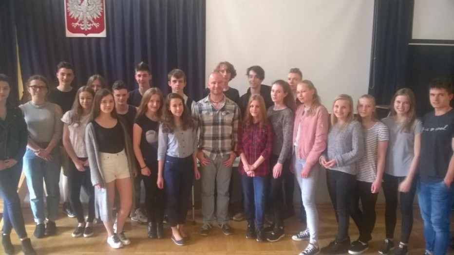 Oczywiście największe wrażenie wzbudziła historia skoku ze spadochronem ze stratosfery (miał miejsce w grudniu 2014 r. ), którą można było prześledzić oglądając fragmenty programów telewizyjnych dokumentujących to wydarzenie. Relacja była tak wciągająca, że razem z bohaterami przeżywaliśmy zarówno przygotowania, jak i sam przebieg skoku z balonu. Po prawie półtoragodzinnym spotkaniu część uczniów pozostała z naszym gościem, zadając mu wiele pytań związanych z jego zawodem, jak i licznymi pasjami.