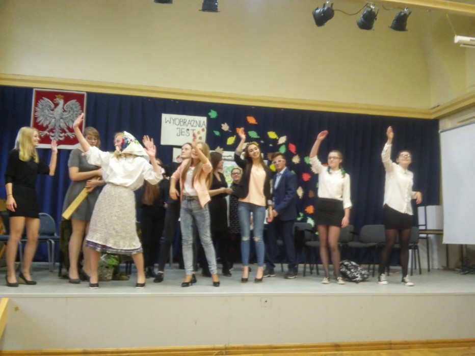 Po przemówieniach wyjaśniających ideę Dnia Edukacji Narodowej wszystkich zgromadzonych zaproszono do obejrzenia przedstawienia w wykonaniu klasy humanistycznej. Tym akcentem rozpoczęła się druga, nieformalna część apelu. Na scenę wkroczyli uczniowie.