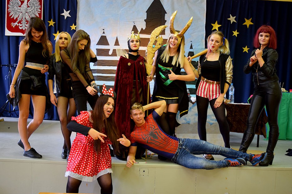 Jury, w skład którego weszli superbohaterowie, miało trudne zadanie, oceniając kilka konkurencji, tj.: Prezentacja strojów, występ sceniczny, wykonanie piosenki, ”wyścigi rzędów” , ”parada oszustów” czy malowanie portretu wychowawcy. Klasy integrowały się i bawiły wraz z wychowawcami. Ostatecznie wygrała klasa 1F(66pkt), drugie miejsce zajęła klasa 1B(62pkt),trzecie 1A(57pkt), czwarte IC(54pkt),piąte IE(49pkt),a ostatnie ID(39 pkt). Wygrana klasa w nagrodę otrzymała ”szczęśliwe numerki” na poniedziałek, natomiast klasa, która przegrała sprzątała aulę po zakończonej zabawie.