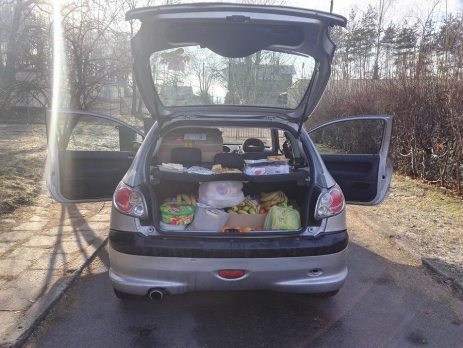 Wspólnie z orgnizatorami z ZSE udało nam się zawieźć zebraną żywność trzema samochodami z wypchanymi po brzegi bagażnikami do siedziby PCK.