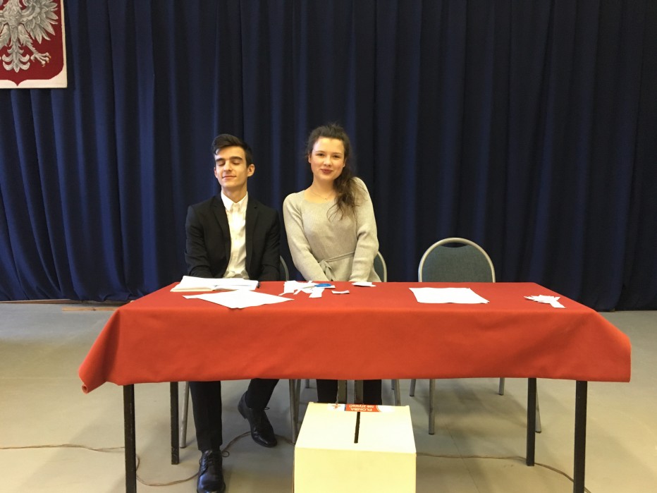 Zagłosowaliśmy. Jak pamiętacie, wybieraliśmy spośród pięciu kandydatów z pierwszych i drugich klas. Samorząd Uczniowski przygotował aulę. Nad prawidłowością przebiegu wyborów czuwała komisja: Anna Wróblewska, Olaf Kramarski, Wojciech Kukieła. Logistką zajęły się Kaja i Natalia z klasy 2a. Po przeliczeniu głosów okazało się, że szkoła wybrała – 147 uczniów oddało głos na Klaudię Kowalik, uczennicę klasy 2 b. Kolejno uplasowali się: Maria Koplin, Dominik Paszko, Bartosz Zarówny, Natalia Sikorzyńska. Warto zauważyć, że tylko jeden głos okazał się nieważny!