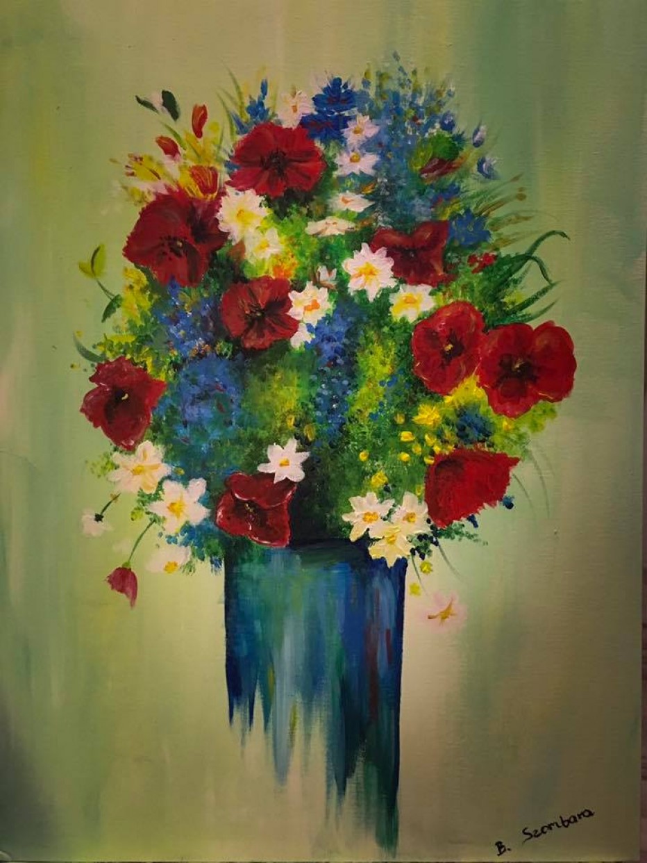 Zapraszamy do licytacji obrazu Polne Kwiaty Basi Szombary z klasy III d. Dochód ze sprzedaży zostanie przekazany na pomoc pogorzelcom Nowej Wsi Kraśnickiej, którzy stracili swój dom.