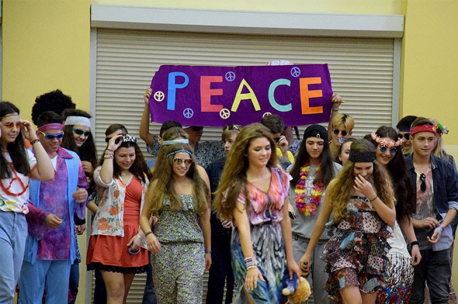 I tak, w klimacie lat dwudziestych bawili się sami organizatorzy; do lat czterdziestych udała się klasa IC; IB odwiedziła lata pięćdziesiąte; 1D zidentyfikowała się z dziećmi kwiatów z lat sześćdziesiątych; 1E stworzyła atmosferę lat siedemdziesiątych, a lata dziewięćdziesiąte zaprezentowała klasa 1A. Pierwszoklasiści zobrazowali różnorodność i barwność minionego wieku swoimi strojami i krótkimi prezentacjami. W duchu zdrowej rywalizacji zmierzyli się z każdym postawionym przed nimi zadaniem.