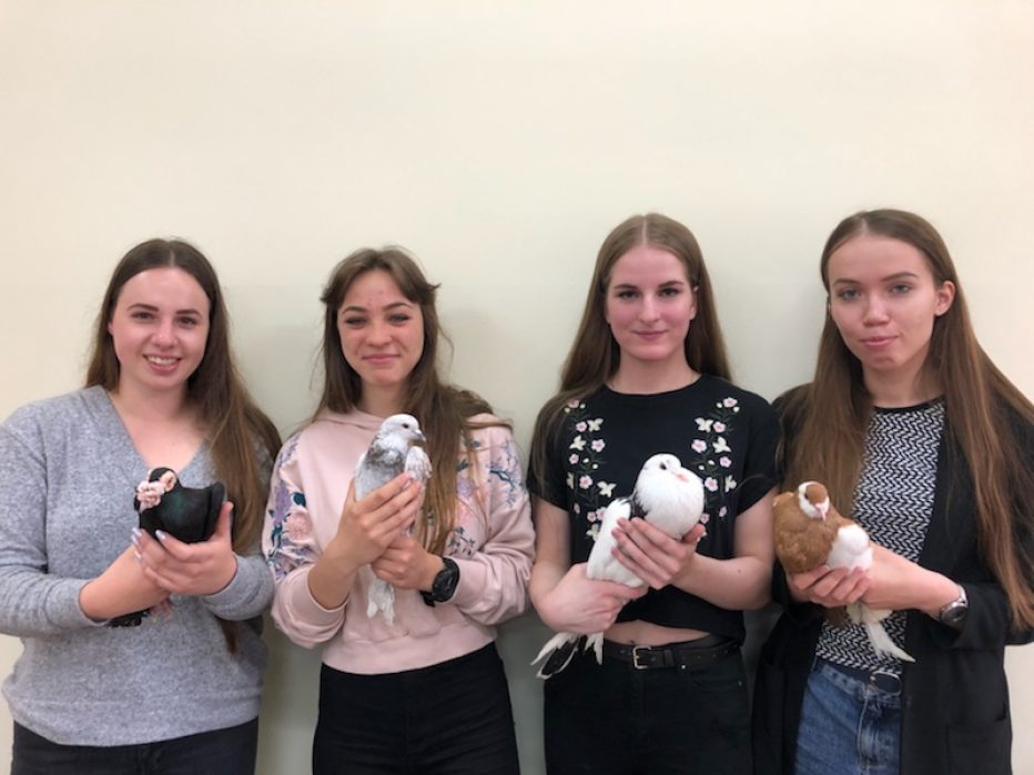 Dzięki uprzejmości uczennicy Zuzanny Drozdek z klasy IIf, mogliśmy na lekcjach biologii podziwiać urodę gołębi wystawowych. Zagościły u nas loczek, garłacz siodłaty łapciaty, garłacz pomorski i karier. Lekcja pokazowa była połączona z omówieniem biologii gołębi. Wszyscy słuchali i oglądali z wielkim zainteresowaniem.