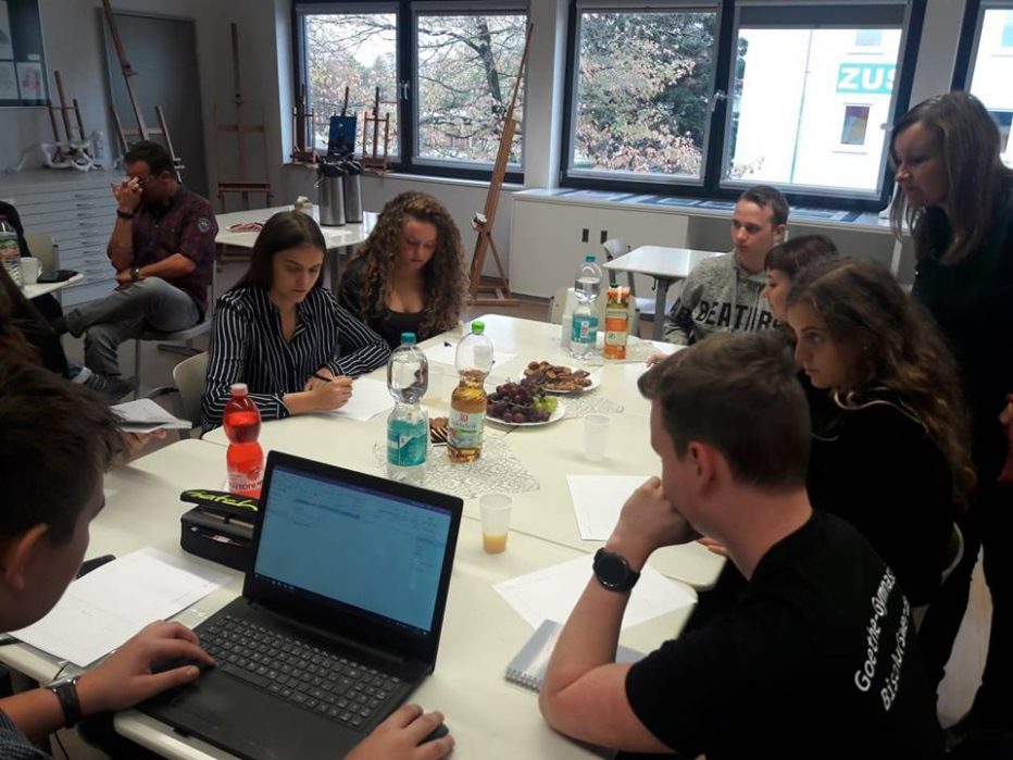 25 października w Hoyerswerdzie odbyło się w tym celu spotkanie robocze, w trakcie którego ustalano wszystkie niezbędne szczegóły. Nasz UAT reprezentowały Alicja Świca z kl. III a i Julita Węglicka z kl. II e, wraz z panią wicedyrektor Katarzyną Żak, jedna z koordynatorek projektu. Członkowie agencji z Polski i Niemiec zapoznali się z warunkami sali wystawienniczej, określili niezbędny sprzęt oraz materiały, w które zaopatrzone będą wszystkie stoiska. Praca nad logistyką i programem II Targów była nieco łatwiejsza, niż przy I Targach, które odbyły się w grudniu ubiegłego roku w Goerlitz.