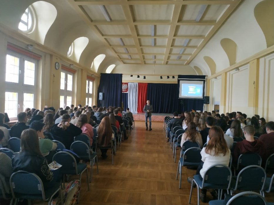 W miniony piątek (11.01.2019r.) odbyło się spotkanie dla uczniów klas III z przedstawicielem PWSZ w Legnicy. Przedstawiona została oferta uczelni – kierunki, warunki rekrutacji, baza noclegowa, stypendia oraz inne ważne zagadnienia dotyczące studiów na tej uczelni. Za pomocą filmów promujących uczelnię dowiedzieliśmy się o możliwościach spędzania czasu przez studentów poza zajęciami dydaktycznymi, zarówno organizowanych przez szkołę, jaki i innych m.in. uczelniane wyprawy górskie, uprawianie różnorodnych dyscyplin sportowych, udział w koncertach, występach kabaretowych, wystawach, pokazach.