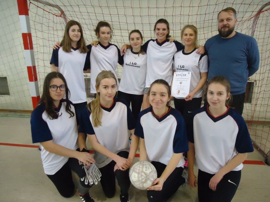 W poniedziałek, 9 grudnia 2019 roku, na Naszej hali sportowej do rywalizacji przystąpiły Futsal owe drużyny żeńskie. Na 4 zgłoszone ekipy, reprezentacja I LO, zajęła II miejsce, ustępując róweniśniczkom z II Liceum Oólnoksztłacącecgo, z którym przegraliśmy 1:2. Poztsałe wyniki uzyskane przez Nasze dziewczęta to: 4:0 z Zespołem Szkół Budowlanych oraz 2:1 z Zespołem Szkół Ogólnokształcących i Zawodowych.