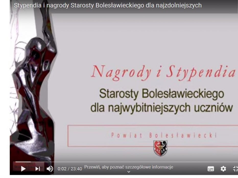 Relację z przyznania Nagród i Stypendiów Starosty Bolesławieckiego można obejrzeć na stronie:
