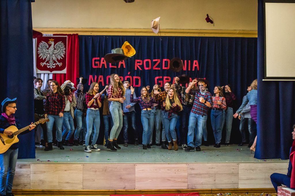 -miejsce pierwsze (272 pkt.) – klasa 1A, w koszulach w kratkę, podbitych cholewkach i kowbojskich kapeluszach obrazująca gatunek Country, z Dolly Parton na czele (za którą przebrała się pani wychowawczyni- Katarzyna Cieślak-Ostrowska)