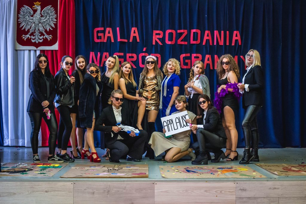 Wydarzenie swym motywem nawiązywało do jednej z najgłośniejszych gal muzycznych, Grammy. Nad pierwszoklasistami i wyznaczonymi dla nich sektorami miała pieczę kadra ochroniarzy (w te role wcielały się Hanna Dienstbier, Monika Dymarska, Karolina Makowska, Martyna Markusz i Kornelia Pyrkosz). Zaś w jury konkursu, jak i w jej asyście, zasiadły głównie światowej sławy gwiazdy: amerykańska ikona kabaretu, Marilyn Monroe (odgrywana przez Polę Burczyk); polska królowa popu i kontrowersji, Doda (odgrywana przez Natalię Deberny); nie tylko piosenkarka, ale również projektantka mody i właścicielka branży kosmetycznej, Rihanna (odgrywana przez Idę Paluszczyszn); ikona popu, walcząca o swoją niezależność i głos Britney Spears (odgrywana przez Malwinę Szafran); jedna z twarzy dzisiejszej muzyki, idolka wielu, która nie raz udowodniła, że dla niej nie ma granic w świecie muzyki, Beyonce (odgrywana przez Amelię Jackowską); Prowadzącymi imprezę byli: jedna z bardziej rozpoznawalnych par celebrytów, Camila Cabello i Shawn Mendes (w te role wcielili się Jasmina Skorupka i Miłosz Drużga). Asystę jury stanowiły także dwie młode wokalistki, wielbione przez wielu nastolatków: Taylor Swift (odegrana przez Magdalenę Tkaczyk) i Ariana Grande (odegrana przez Klaudię Pyrz)