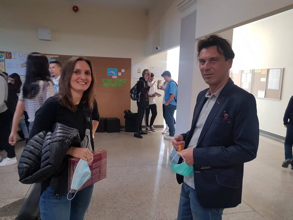 Zawsze miło nam gościć byłe uczennice i byłych uczniów naszej szkoły. Radość jest podwójna jeśli odwiedza nas małżeństwo Absolwentów. 1 października z naszego zaproszenia skorzystali: Katarzyna Mroczek-Filipowicz (absolwentka z 2007r) oraz Przemysław Filipowicz (absolwent 2006). I choć oboje ukończyli Uniwersytet Jagielloński, mieszkają i pracują w Krakowie, to ich drogi zawodowe rozpięte są pomiędzy naukami ścisłymi a sztuką. Dlatego z p. Kasią spotkała się druga klasa matematyczno-fizyczna, a z p. Przemkiem – trzecia humanistyczna.