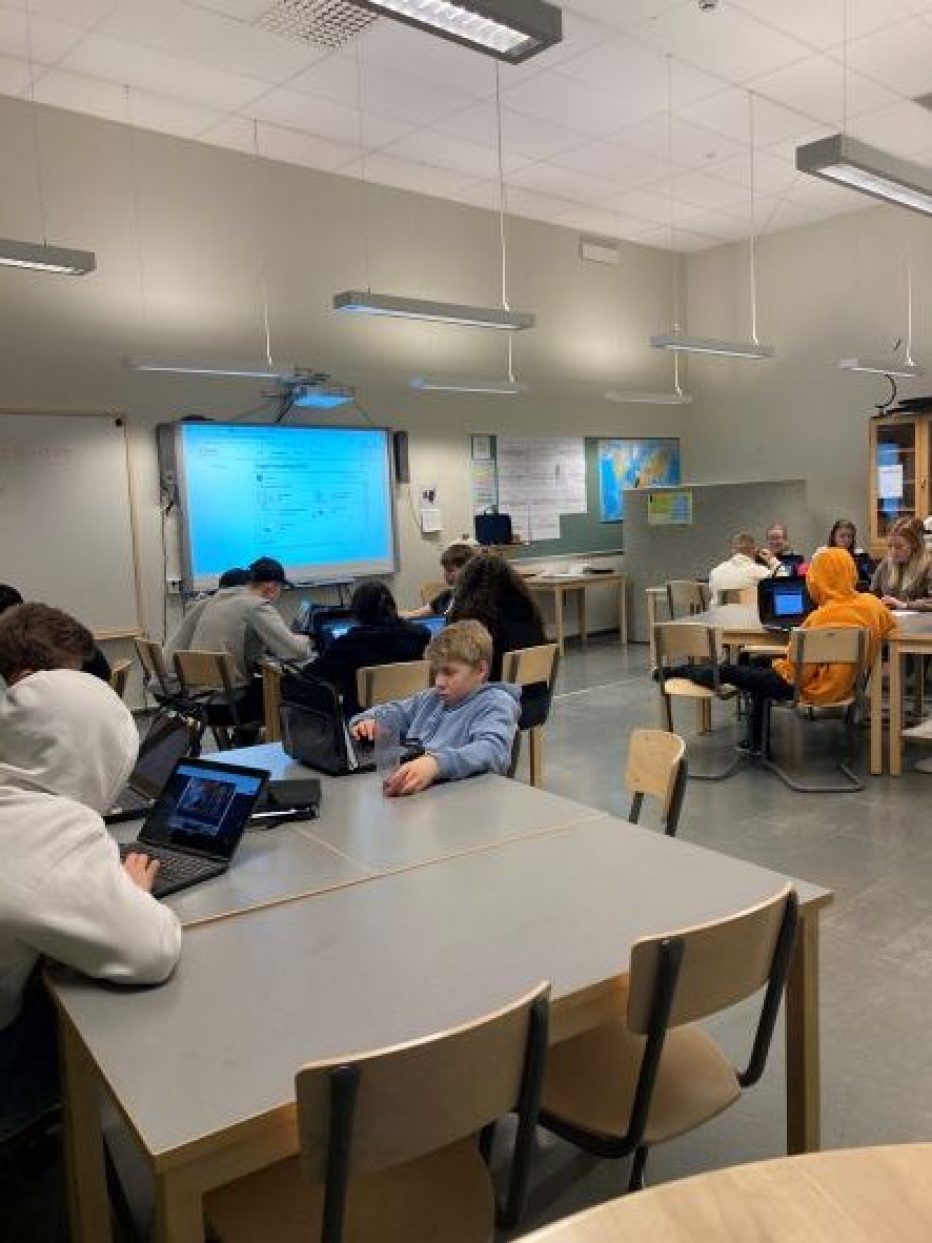Rozpisałam się o samej szkole, a co jeśli chodzi o nauczanie języka angielskiego i poziom uczniów? No cóż, o ile byłam pod wrażeniem wyposażenia szkoły i udogodnień, o tyle poziom uczniów już mnie nie zachwycił i myślę, że nasi uczniowie nie mają się czego wstydzić. Uczniowie tej szkoły są faktycznie młodsi niż nasi jak zaczynają w niej edukację, nie mniej jednak, słysząc o tym, jak wysoki jest poziom języka angielskiego w Skandynawii i że od dziecka wszystkie filmy i bajki oglądają po angielsku, spodziewałam się sporej różnicy w poziomie. Tak jak u nas, niektórzy radzą sobie dużo lepiej, inny słabiej… Grupy/ klasy liczą rzeczywiście około 30 uczniów (u nas do 24 w przypadku języków), ale trzeba zaznaczyć, że dla przedmiotów takich jak: szwedzki, angielski i matematyka do każdej lekcji przydzielonych jest dwóch albo nawet trzech nauczycieli ? Jak to wygląda w praktyce? Obserwowałam tylko lekcje języka angielskiego, więc na tym się skupię. Jeden nauczyciel „dowodzi” podczas danej lekcji i na przykład objaśnia temat, a kiedy przychodzi do realizacji zadań, dzielą klasę, zazwyczaj według poziomów – jeden z nauczycieli pracuje z najbardziej samodzielnymi uczniami, drugi zabiera ze sobą kilka osób, które, przykładowo, wymagają przeczytania im tekstu na głos oraz/lub przetłumaczenia i idą do innego pomieszczenia, a trzeci (jeśli jest) najczęściej zajmuję się osobami z największymi problemami w nauce- czasami jest to tylko jedno dziecko. Trzeba przyznać, że takie wsparcie na pewno przynosi efekty. Szwedzi podkreślają, że chcą dawać każdemu równe szanse i że każdy uczeń powinien mieć możliwość odniesienia sukcesu – brzmi świetnie, ale jak zawsze są też minusy… Dużo rozmawiałam ze nauczycielami, dyrektorem, pracownikami szkoły i innymi osobami mieszkającymi w Szwecji, spotkałam nawet Polkę w jednej w siódmych klas, która od piątego roku życia tam mieszka i mówią też, że szwedzka edukacja bardziej skupia się na tych słabszych uczniach niż na tych zdolnych, że ci bardzo dobrzy gubią się gdzieś w tym systemie, a nauczyciele sprawiają wrażenie niezbyt wymagających, no i przyznają, że nauczyciele miewają problemy z dyscypliną. Wracając do angielskiego, jak już wspomniałam, uczniowie z tej szkoły nie mają papierowych podręczników, wiec angliści wspólnie opracowują lekcje dla poszczególnych poziomów klas – czasami dzielą się wedle swoich zainteresowań, na przykład jedna nauczycielka opracowuje tekst o kraju anglojęzycznym, razem z ćwiczeniami na słownictwo i słuchaniem (które często wynajduje w starych podręcznikach), inna przygotowuje lekcje z gramatyki, a potem wszyscy angliści prowadzą lekcję z tych materiałów. Tak jak my, mają zajęcia na których pracują z tekstami, z ćwiczeniami na słownictwo, na słuchanie, pisanie, gramatykę… oprócz tego w każdym roku mają dwie lub trzy lektury do opracowania – są to uproszczone wersje książek, takich jak, na przykład, „Forrest Gump”- poświęcają na to kilka lekcji, potem wspólnie oglądają film.