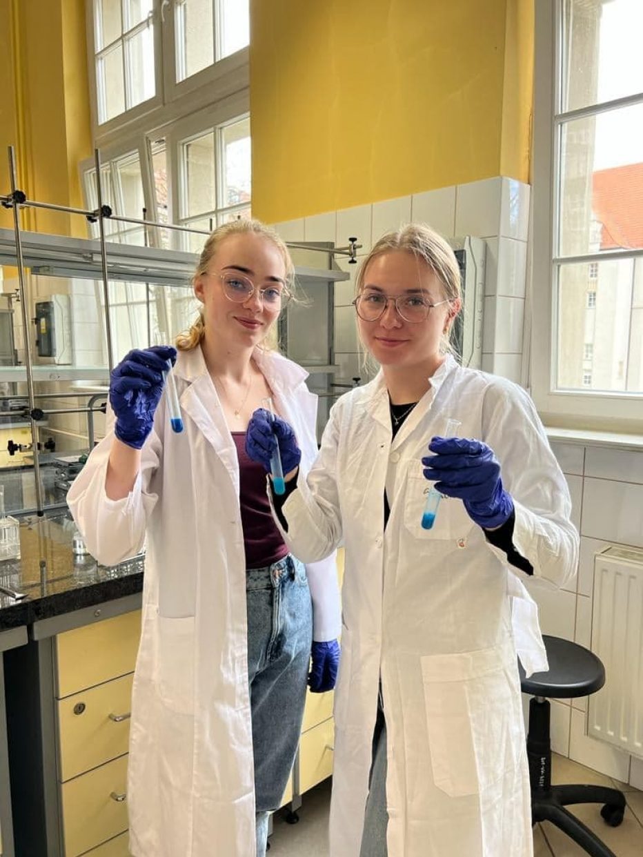 Klasy z rozszerzoną chemią kontynuują program warsztatów na Wydziale Chemii Politechniki Wrocławskiej. Dzięki porozumieniu zawartemu z tą uczelnią nasi uczniowie od lat uczestniczą w zajęciach laboratoryjnych prowadzonych przez pracowników naukowych. Koordynatorką tej współpracy jest pani Dorota Startek.