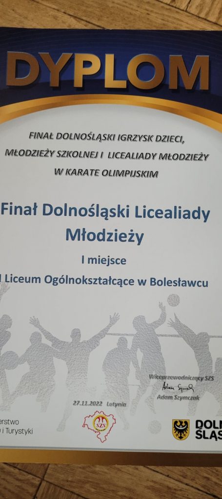 Wielkim sukcesem zakończył się udział naszej reprezentacji w Finale Dolnośląskim Licealiady Młodzieży w Karate Olimpijskim. 5-osobowa drużyna pierwszoklasistów wróciła z I miejscem dla naszej szkoły!