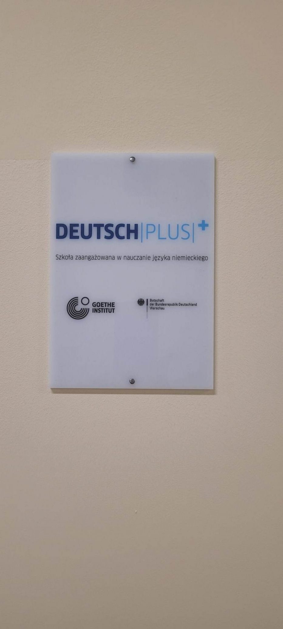 Dwie tabliczki informujące o przystąpieniu do programu „Deutsch Plus” zostały umieszczone przy klasach 110 i 218.
