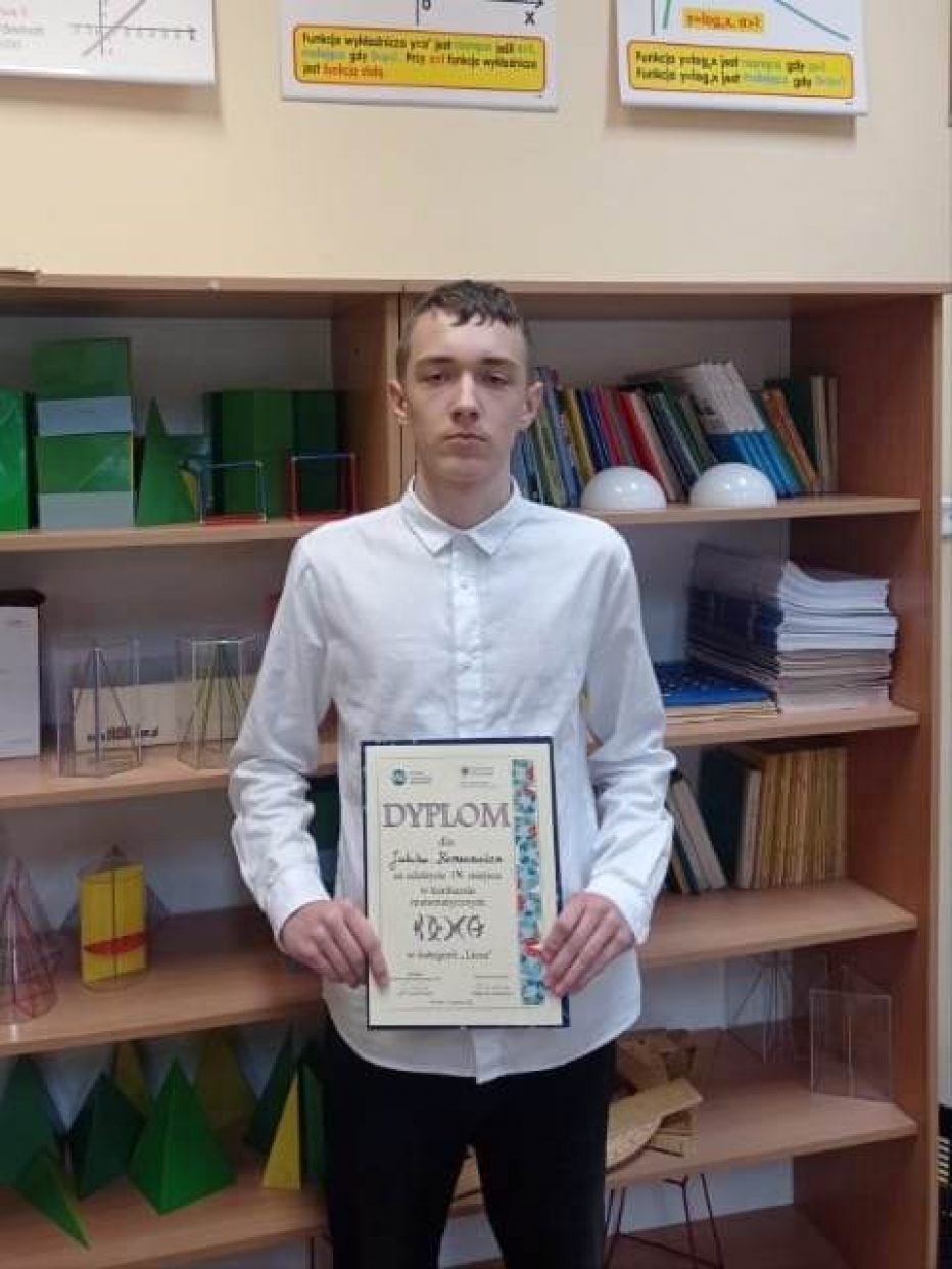 Jakub Korzeniewicz z klasy III a został tegorocznym finalistą „Konkursu Matematycznego Koma 2022”. Do konkursu składającego się z dwóch etapów: szkolnego oraz finału, który odbywa się na Wydziale Matematyki Uniwersytetu Wrocławskiego przystąpiło aż 24 uczniów i uczennic z naszej szkoły. Do finału zakwalifikowali się: Konrad Andruchów (kl. IVa) oraz Wojciech Raszczuk i Jakub Korzeniewicz (kl. III a).