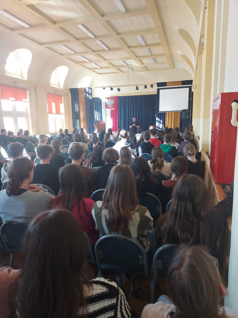 O tym, jak ważna jest świadomość, jak zapobiegać, jak reagować i czego się ustrzegać przekonywał na spotkaniach z młodzieżą, a także z rodzicami sierżant Radosław Kalamarz, dzielnicowy z Komendy Powiatowej Policji w Bolesławcu. 12 stycznia i 9 lutego 2023 r. uczniowie klas I i II uczestniczyli w spotkaniu poświęconych odpowiedzialności prawnej nieletnich. Podczas spotkania funkcjonariusz policji wyjaśnił uczniom kim jest osoba nieletnia, jak również za jakie czyny odpowiada. Odwołując się do doświadczeń policji oraz przypadków z własnej praktyki przedstawił zagadnienia związane z odpowiedzialnością nieletnich za popełnione czyny karalne i za zachowanie niezgodne z przyjętymi normami społecznymi. Funkcjonariusz policji porozmawiał z młodzieżą również o zagrożeniach wynikających z używania narkotyków i dopalaczy, przedstawił jak zgubnie oddziaływują na organizm ludzki tego typu substancje, a ich zażywanie wiąże się z poważnym ryzykiem dla zdrowia, a nawet życia.