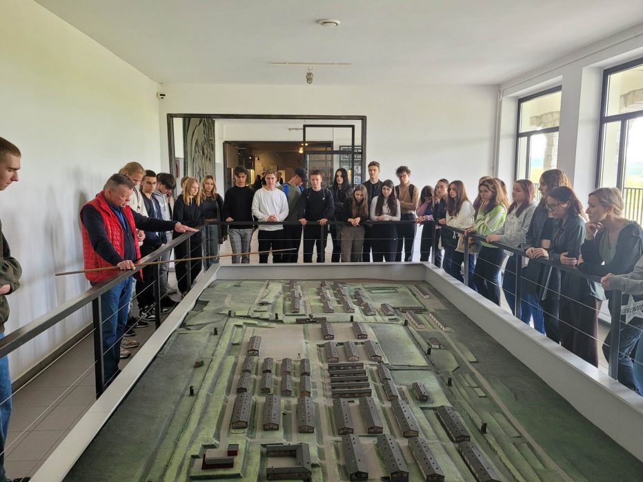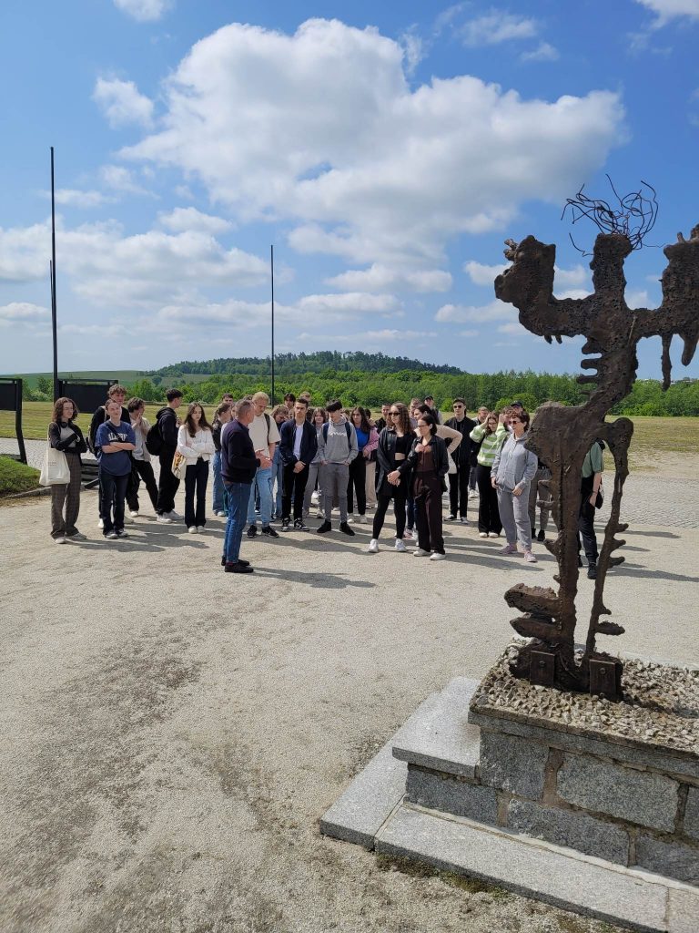Wróciliśmy do pomysłu zatrzymanego przed paru laty przez COVID. Grupa w składzie: Iga Roścszewska III B, Katarzyna Rewińska, Bartosz Szymczak III D, Amelia Kopeć i Pola Pełka II D pracowała od września nad zebraniem informacji z książek, artykułów i innych źródeł w języku polskim. Nasi projektanci wiedzy wynajdowali różne informacje dotyczące propagandy Hitlera i budowania „imperium śmierci” w okresie przedwojennym i w czasie samej wojny na Dolnym Śląsku, który należał wtedy do Niemiec. Celem było pokazanie wytworzonej przez niego „machiny śmierci”, gdzie nie liczyli się ludzie, których w bestialski sposób wykorzystywano, mordowano, głodzono. W tej machinie szaleńca, którego słuchały tłumy, nawet ludzie byli narzędziem do osiągnięcia celu, który skończył się ludobójstwem na ogromną skalę. Uczniowie dokonali tłumaczeń zebranych materiałów na angielski i przygotowali wycieczkę dla 44 osób z zaprzyjaźnionych klas, gdzie jako eksperci-przewodnicy opowiadali uczestnikom o historii Dolnego Śląska – tej smutnej, skropionej krwią wielu narodów. Odwiedziliśmy obóz pracy i zagłady – Gross Rosen. Oddaliśmy hołd tym, co polegli.