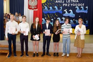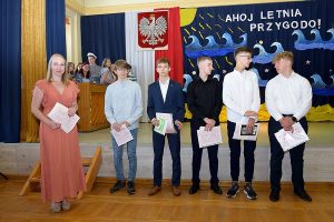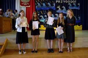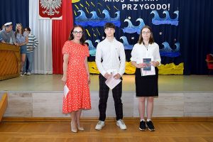 Gratulacje wraz z uczniami odebrali także opiekunowie: dyrektor Cezary Czernatowicz, p. Małgorzata Szymańska i Katarzyna Cieślak-Ostrowska.