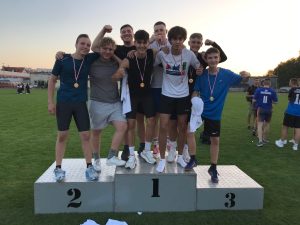 Największe emocje wzbudziły starty sztafet. Nasi lekkoatleci wystartowali w sztafecie 4×100 dziewczęta- i sztafecie szwedzkiej- chłopcy. Obie okazały się najszybsze na Dolnym Śląsku!! A bieg Stanisława Strzeleckiego na ostatniej zmianie (z 3 miejsca wyprowadził naszą sztafetę na powadzenie) dostarczyły wszystkim ogromnych emocji i sprawił, że złoto smakuje lepiej:)