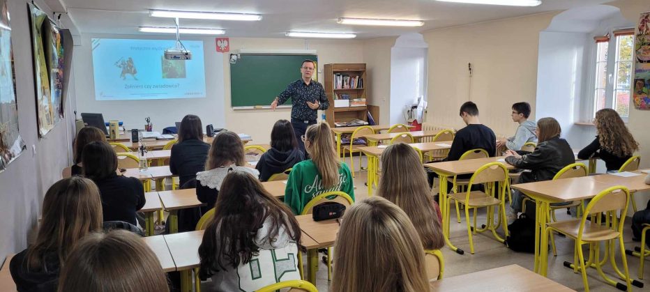 W październiku klasa 2c uczestniczyła w warsztatach 4K, które rozwijały cztery najważniejsze kompetencje XXI wieku – komunikację, kooperację, kreatywność i krytyczne myślenie. Warsztaty odbyły się w dwóch blokach. Podczas pierwszych zajęć pracowaliśmy nad komunikacją i współpracą. Mieliśmy do wykonania zadanie z wykorzystaniem klocków, w trakcie którego dowiedzieliśmy się, co jest potrzebne, aby dobrze i skutecznie ze sobą współdziałać. Prowadzący wyświetlał nam slajdy, które różnie zinterpretowaliśmy i wyjaśnił z czego wynikają różnice w postrzeganiu kolejnych obrazów przez różne osoby . Bardzo ciekawe było zadanie, dzięki któremu poznaliśmy mocne i słabe strony w komunikowaniu się. Drugie zajęcia skupione były na krytycznym myśleniu i kreatywności. Posłuchaliśmy wykładu o pierwszej z tych kompetencji, a także robiliśmy zadanie, w którym dwie grupy miały niekompletne informacje na dany temat i dzięki kooperacji musiały znaleźć rozwiązanie problemu. Na koniec usłyszeliśmy kilku ciekawostek o kreatywności i rozwiązywaliśmy związane z nią rebusy. Wiemy, że nauka i zdobywanie wiedzy jest bardzo ważne, ale rozwijanie powyższych kompetencji i stosowanie ich w życiu szkolnym, a potem w dorosłych działaniach na pewno pomoże nam na lepsze i przyjemniejsze funkcjonowanie w społeczeństwie.