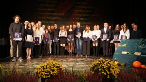 Po raz kolejny z dumą możemy powiedzieć o sukcesach naszych licealistek i licealistów, bo aż 17. z nich otrzymało Stypendia Starosty Bolesławieckiego, do sześciorga trafiły Nagrody za osiągnięcia sportowe i artystyczne, a aż 9. absolwentek uhonorowano za ukończenie szkoły z wynikiem 5,20 i powyżej. Gala wręczenia odbyła się w 24 października w Teatrze Starym i jak zwykle towarzyszyły jej ogromne emocje, zarówno nagrodzonych, jak też ich rodziców. Gościem tegorocznej uroczystości był pan Roman Kowalczyk, Dolnośląski Kurator Oświaty.