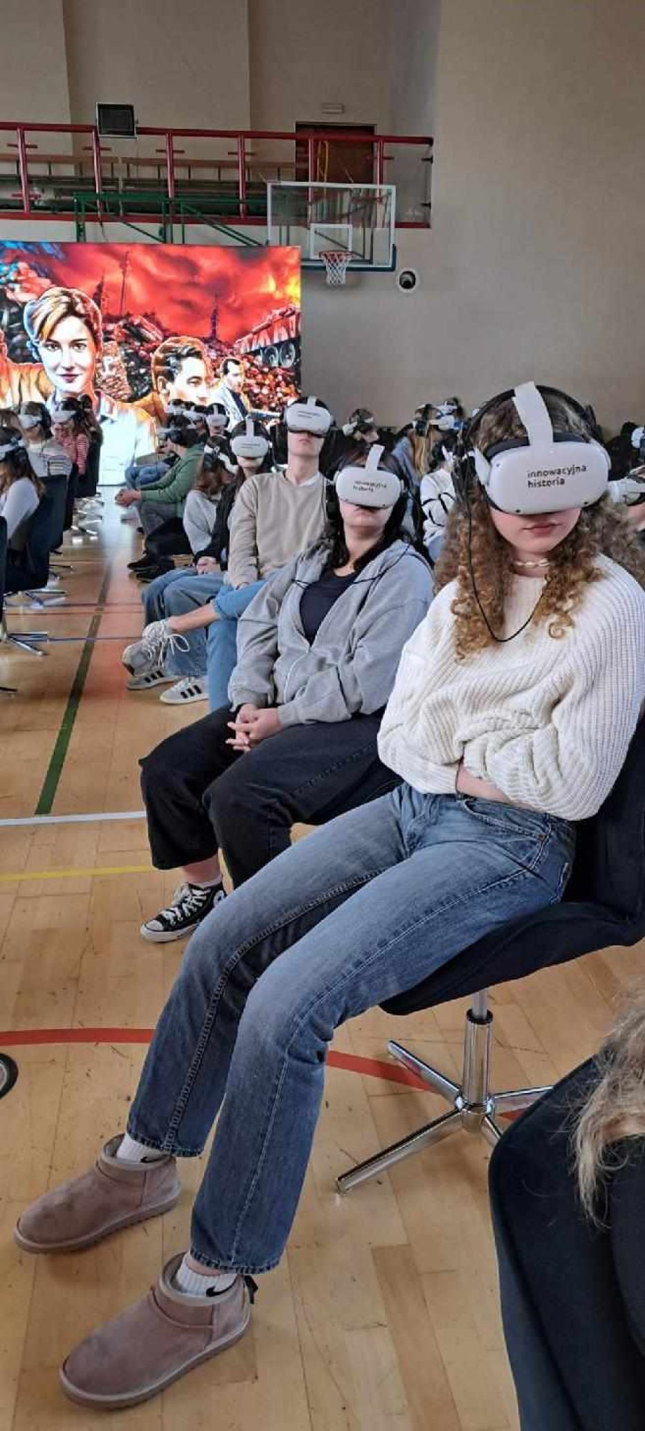 W piątek, 24 listopada mieliśmy okazję wziąć udział w nietypowej lekcji historii, a to za sprawą projektu  „Innowacyjna historia – nowe technologie w służbie edukacji”. W sali gimnastycznej Szkoły Podstawowej nr 4, która w ten dzień zamieniła się w przestrzeń do „podróży w czasie”, mogliśmy za sprawą specjalnie zbudowanej scenografii, projektora, nagłośnienia oraz obrotowych foteli  i oczywiście gogli – doświadczyć wirtualnej rzeczywistości.