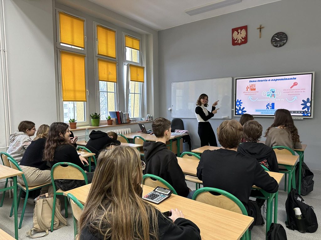 Spotkanie, w którym uczestniczyliśmy było pewnego rodzaju odpowiedzią, jak możemy poprawić swoją pamięć? Jak sprawić, by nie umykały nam ważne daty i tematy? Organizatorka spotkania przedstawiła nam efektywne sposoby nauki i zapamiętywania wiedzy szkolnej oraz informacji z życia codziennego.