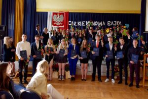 Świadectwa ukończenia szkoły odebrało 125 licealistek i licealistów, z czego aż 27 z wyróżnieniem. Najwyższą średnią w szkole „podzielili się” Mikołaj Mankiewicz i Igor Markiewicz z klasy IV a osiągając wynik 5,50. Wielkie gratulacje!