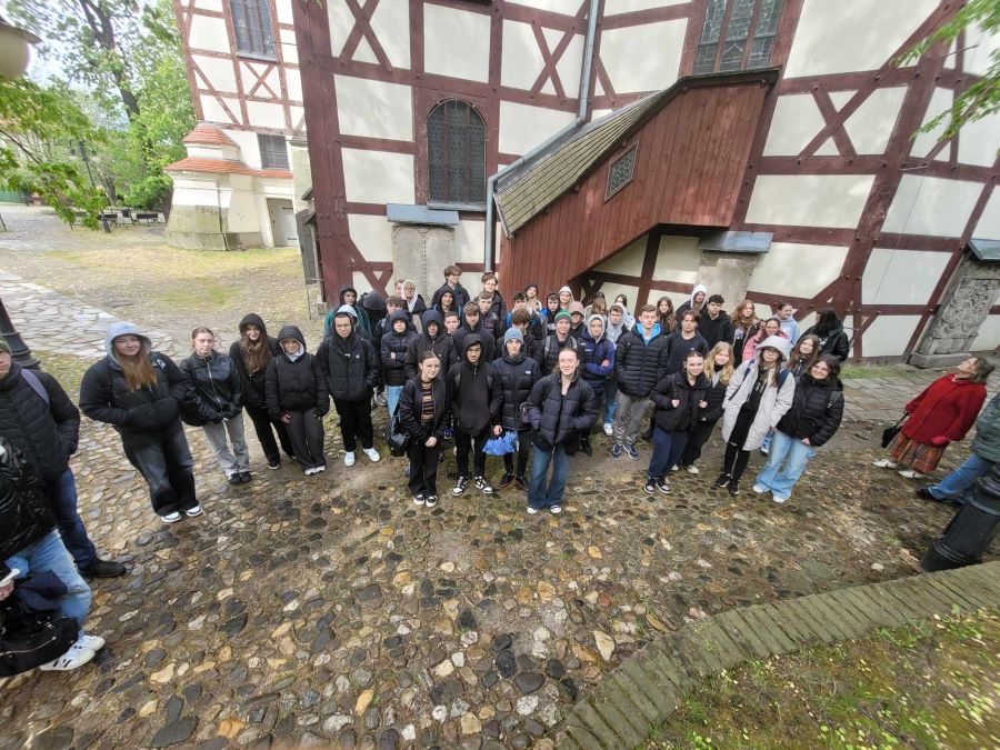 25 kwietnia 2024 r. zakończyliśmy kolejną edycję projektu „Cudze chwalicie…”. Nasi projektanci edukacji, lingwiści i przewodnicy turystyczni w jednym – Marlena Fabiańska, Natasza Kotowska i Miłosz Meier z klasy IIa pracowali skutecznie i metodycznie od września, skupiając się na legendach Dolnego Śląska. Z kilkuset wybrali kilka ciekawych przypowieści, najpierw pracowali z materiałami w języku polskim, potem wszystko tłumaczyli. Ostatecznie zorganizowali wycieczkę dla ponad pięćdziesięciu osób z klas IIa, IIf, Id, Ia i całej Ie z wychowawczynią i poprowadzili tę grupę już w roli przewodników do Jawora i Bolkowa pod opieką p. Jolanty Kawuli, Izabeli Jaworskiej i L. Idzikowskiego – pomysłodawcy projektu.