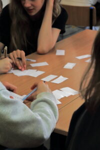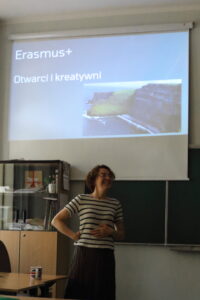 Następnie nasi goście udali się na warsztatowe spotkania. Pani Karolina Jarząbek zaprosiła na lekcję biologii (od malucha do maturzysty), pani Monika Szopa-Pawlik do chemicznego laboratorium (jak radzić sobie ze stresem), pani Małgorzata Szymańska na historyczne związki człowieka z naturą, pani Ewa Suchecka na geografii zdobywała góry (dosłownie i w przenośni), a na hali sportowej i boisku młodzież przygotowana przez panią Barbarę Sobczyszyn udowadniała, że ” w zdrowym ciele-zdrowy duch”. Zaprosiliśmy także nauczycieli, opiekunów młodzieży na prelekcję związaną z realizacją przez naszą szkołę projektów Erasmus+. Dzieliliśmy się doświadczeniami, jak wpływa to zarówno na uczniów, jak też nauczycieli.