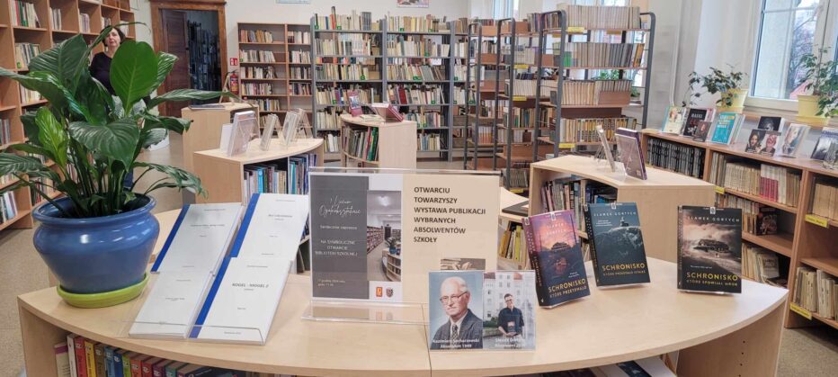 W nowo otwartej bibliotece (po niemal rocznych pracach remontowo-modernizacyjnych) można korzystać nie tylko z księgozbioru, ale także obejrzeć wystawy przygotowane przez panią Dorotę Chrzanowską-Florków. Jedna z nich jest poświęcona historii naszej szkolnej „skarbnicy książek”, a druga ekspozycja prezentuje autorów książek i publikacji. Co ich łączy? To, że wszyscy są absolwentami naszego liceum, a także to, że wszystkie książki są w bibliotecznych zbiorach.
