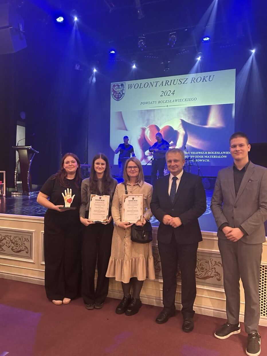 Jesteśmy niezwykle dumni z faktu, że kapituła przyznająca tytuł Powiatowego Wolontariusza Roku 2024 doceniła postawę, zaangażowanie i starania dwóm naszych wspaniałych Pań. Na uroczystej Gali, która odbyła się w Teatrze Starym 5 grudnia 2024 roku mogliśmy cieszyć się podwójnie. Tytuł Wolontariusz Roku w kategorii dorosły trafił do Pani Irminy Nowak, zaś wyróżnienie w kategorii Wolontariusz młodzieżowy do Julii Brońskiej z klasy IVb. Radość była tym większa, że w szkolnej i pozaszkolnej aktywności charytatywnej właśnie obie Nagrodzone Panie działają od lat wspólnie, inicjując i animując licealną pomoc, która trafia do wielu potrzebujących.