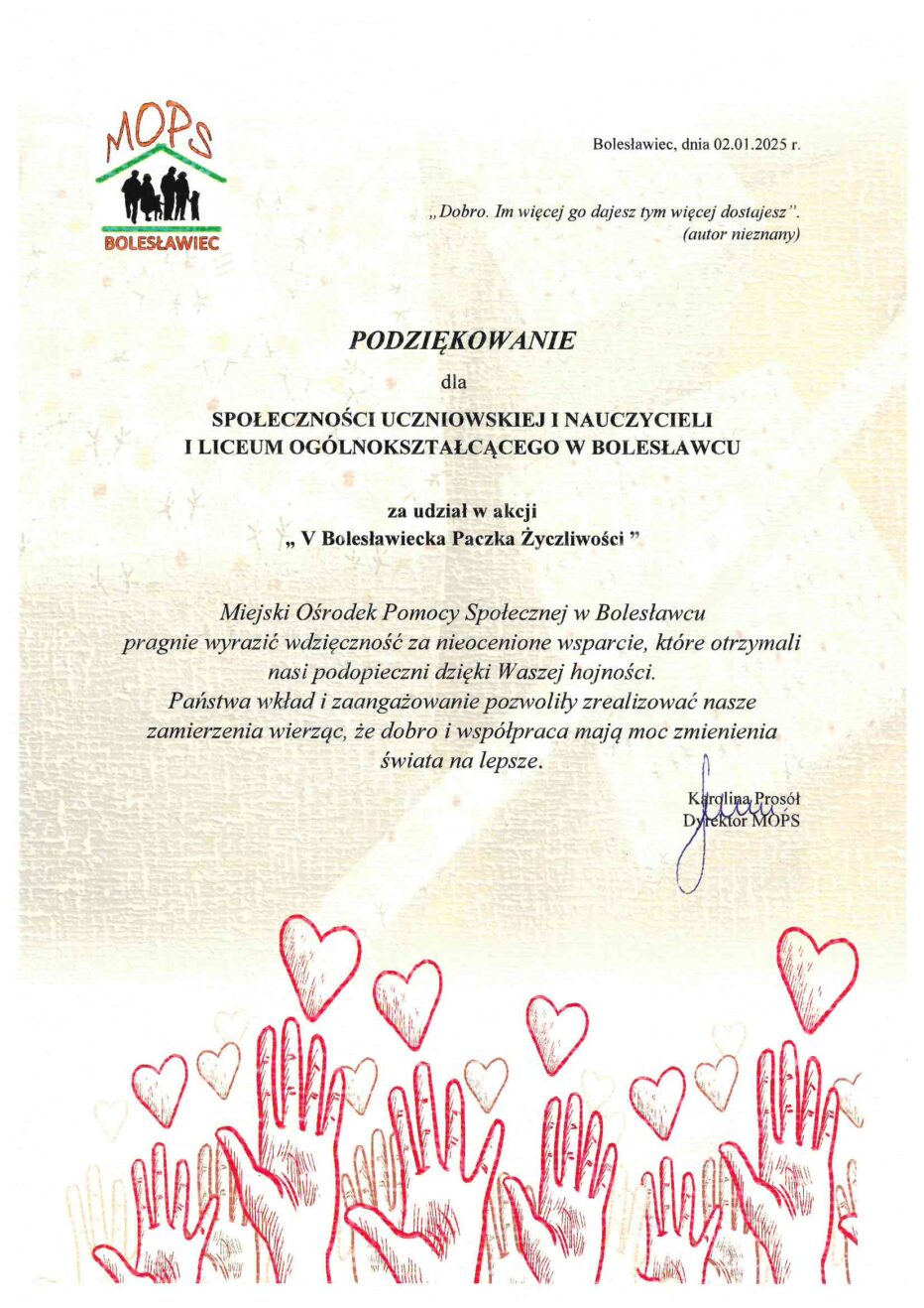 Grudzień był dla nas niezwykle aktywnym miesiącem. Cieszyliśmy się, że po raz kolejny, dzięki naszym akcjom pomocowym – mogliśmy sprawić radość innym. Tradycyjnie przygotowaliśmy „Szlachetną Paczkę”, uczestniczyliśmy w „Bolesławieckiej Paczce Życzliwości”, podarowaliśmy prezenty dla małych pacjentów oddziału dziecięcego bolesławieckiego Szpitala im. Św. Łukasza, wsparliśmy 3 schroniska dla małych zwierząt.