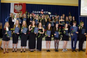 Uroczystości, którą przygotowała klasa I c wraz z wychowawczynią, panią Moniką Szopą-Pawlik oraz panią Irminą Nowak, przy współpracy z chórem Synkopa 2 oraz absolwentami towarzyszyły piękne występy wśród których wybrzmiały muzyczne dedykacje dla nauczycieli, rodziców oraz wzruszające „My way” oraz podniosłe „Gaudeamus”.