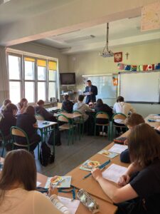 Klasy 2a i 2c wzięły dzisiaj udział w warsztatach lingwistycznych prowadzonych przez profesora Uniwersytetu Wrocławskiego pana Michała Garcarza. Nasz gość, który sam określa się przyjacielem naszej szkoły, jest językoznawcą, profesorem, doktorem habilitowanym nauk humanistycznych, profesorem nadzwyczajnym Instytutu Filologii Angielskiej Wydziału Filologicznego Uniwersytetu Wrocławskiego i Wyższej Szkoły Bankowej we Wrocławiu. Nasi uczniowie ćwiczyli niuanse językowe, zagłębiali się w tajniki gramatyki i tłumaczenia.