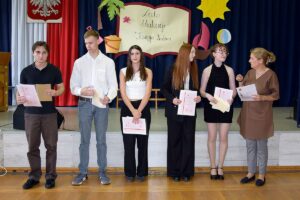 Wyróżniono także Oliwię Roman z kl. III a za uwiecznianie życia szkoły w mediach społecznościowych, Agatę Pawlik z kl. III b za inspirowanie wielu wydarzeń, podziękowania trafiły także do Jakuba Siemaszko z kl. II f i Maksymiliana Krzystanka z II e za całoroczną obsługę radiowęzła szkolnego.