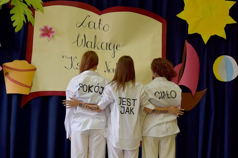 Kolejny rok szkolny przechodzi do historii. Tym razem w tej radosnej uroczystości towarzyszyli nam: pan Mariusz Mendocha, zastępca Naczelnik Wydziału Edukacji i Sportu w Starostwie Powiatowym oraz pan Maciej Burniak, przewodniczący Rady Rodziców. I choć nasza aula ledwo pomieściła wszystkie klasy, to wizja zbliżających się wakacji sprawiła, że humory dopisywały i panowała ogólna radość i rozluźnienie. Zamknęliśmy Księgę Szkoły, otworzyliśmy Księgę Wakacji!