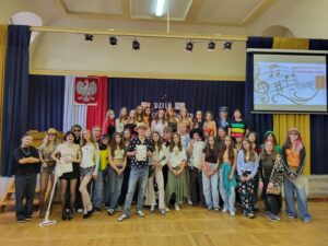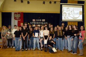 W muzycznych zmaganiach zwyciężyła klasa 1b, drugie miejsce zajęła klasa 1c a trzecie miejsce przypadło klasie 1 a. Konkurencje polegały na zaprezentowaniu się klasy przy wybranym utworze z wylosowanego wcześniej gatunku muzycznego. Uczniowie wykonywali również plakat, który później omawiali, brali też udział w quizie i w konkursie ” Jaka to melodia?” Wszystkie klasy były doskonale przygotowane, co podkreślało „profesjonalne jury”