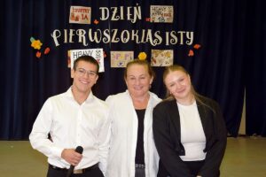 26 września w szkolnej auli odbył się tradycyjny Dzień Pierwszoklasisty. W części oficjalnej klasy pierwsze wraz z wychowawcami byli świadkami ślubowania ich przedstawicieli na Sztandar Szkoły. Wysłuchano też sympatycznych i ciepłych życzeń Dyrektora Cezarego Czernatowicza oraz Przewodniczącego Samorządu Uczniowskiego, Bartosza Paciejewskiego. Po krótkiej przerwie odbyła się część zabawowa, do której wszyscy podeszli bardzo serio wcielając się w przypisane im role. I tak: