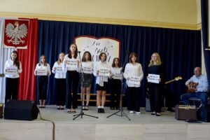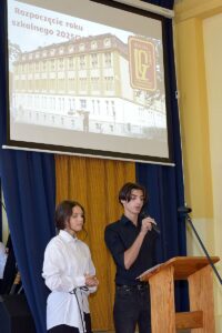 Pięknym i wzruszającym akcentem powitaliśmy nowy rok szkolny. Przyświecało nam hasło „Nie bądź obojętny”, które dobitnie wybrzmiało w słynnym wystąpieniu pana Mariana Turskiego, świadka II wojny światowej i dramatu holokaustu. Co dla nas znaczą te słowa? Czy są tylko odwołaniem do tragedii wojny, czy może powinniśmy w szczególny sposób pamiętać o tym, że to, co nas powinno wyróżniać – to empatia, uważność na drugiego człowieka, humanizm, odpowiedzialność, także w kontekście nauki i własnego rozwoju. O tym wszystkim mówiono i śpiewano na scenie. Niezwykle silnie wybrzmiały słowa utworów „Tolerancja” i „Niepamięć” z repertuaru Stanisława Soyki.