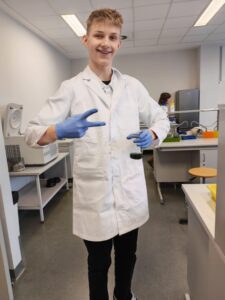 Zajęcia rozpoczęły się niezwykle ciekawym wykładem prof. Wróblewskiego na temat badań nad odpornością, za które została przyznana Nagroda Nobla w dziedzinie medycyny w roku 2025. Później uczniowie udali się do pracowni i w ramach warsztatu identyfikowali cukry proste i złożone, redukujące i nieredukujące poprzez wykonywanie szeregu reakcji chemicznych.