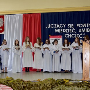 tak wspólnie świętowaliśmy Dzień Edukacji 11 października w szkolnej auli.Tradycyjnie w swoim przemówieniu dyrektor Cezary Czernatowicz dziękował wszystkim nauczycielom, szczególną uwagę poświęcając tym pedagogom, którzy swoją pracą i zaangażowaniem budują oświatowy sukces. Równie ciepłe słowa skierowali do wszystkich: pan Maciej Burniak, przewodniczący Rady Rodziców oraz Kinga Miżdal, szefowa Samorządu Uczniowskiego. Przyszła pora na gratulacje i ..