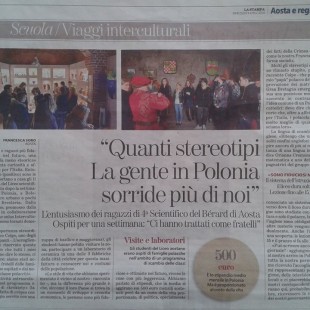 W dniach 17-23/09/2014, grupa uczniów naszej szkoły wyjechała do Włoch, Doliny Aosty w ramach wymiany międzyszkolnej z Liceo Scientifico S. Berard w Aoście. Była to druga część wymiany i rewizyta u rodzin włoskich. Uczniowie z Aosty gościli w Bolesławcu w marcu. Pobyt we Włoszech był wspaniałym doświadczeniem i konfrontacją z trochę inną rzeczywistością zarówno dla ..