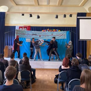 Po kilkuletniej przerwie spowodowanej pandemią, 30 maja, w ramach edukacji językowo-teatralnej, odwiedził nas ponownie międzynarodowy teatr „The Bear” wraz z jego założycielem Davidem Fisherem. Zainteresowanie wydarzeniem było bardzo duże i przedstawienie „The History of England (part 1)” obejrzało ponad dwustu naszych uczniów. Licealiści mogli poznać część historii Anglii, przedstawionej w humorystyczny sposób. W czasie spektaklu ..